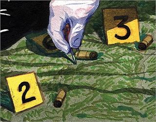 No local de crime, coleta-se os invólucros de metal que são ejetados pela arma após os disparos. Os Cartuchos de munição são geralmente feitos de bronze, o metal perfeito para reagir com o suor, corroendo-o, instantaneamente quando uma arma é disparada.